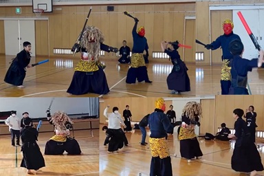 2025/3/29 3月29日、相武会さん、芹が谷剣友会さん、齋藤道場剣友会さんをお招きして、春の合同稽古が開催されました。小学生、中学生の試合の他に自由稽古が行われ、とても活気のある合同稽古となりました。やっぱり大勢で稽古すると楽しいですね。写真と試合動画は追って「行事イベントリポート」にアップします。少しお待ちください。 2025/2/23 2月1日、サンタさんに続いて、港南健友会に今度は鬼がやって来ました!皆さま掲載が大変遅くなってすみません! かなり本格的な鬼にみんな大喜びの剣友会です。最後は、無事子供たちに退治されたようで、何よりでした。でもきっと懲りずに来年も来てくれると思いますよ。 2025/12/28 皆さま、2025年は大変お世話になりました。2026年もどうぞよろしくお願い致します。2025年は実り多い年でしたでしょうか。2026年はより充実した年になるようお祈り致します。そして、剣道を盛り上げて新しい仲間も増えていくと嬉しいですね。皆さん、明るく楽しんでいきましょう! 2025/12/21 クリスマスより一足先に、剣友会にサンタさんがやってきました! 「ホッホー!剣友会の子供たちは、ちゃと稽古してるかなー?」 頑張って稽古している子供たちにプレゼントが配られました。「来年も沢山の子供たちにプレゼントを配るぞー、みんな剣友会においでー!」 さて、サンタさんは誰でしょう!?